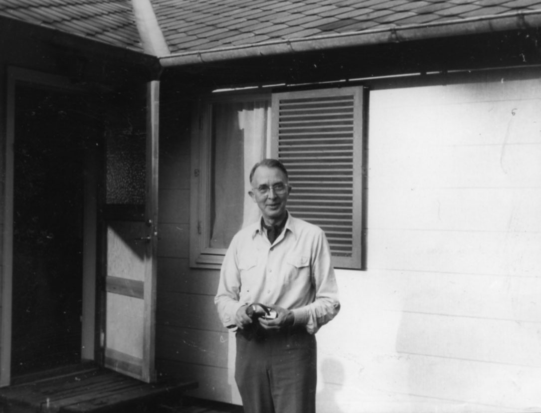 Nils Alwall vid sin sommarstuga i Arild 1964 |