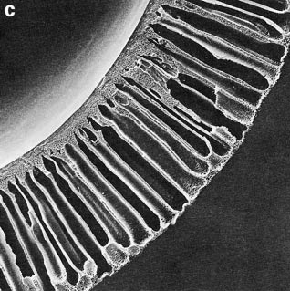 Syntetiskt dialysmembran i låg och hög förstoring. Bildkälla: Ronco et al. 2002. |