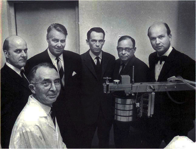 På bilden ses medlemmar i Gambros arbetlag för utveckling av den spiraldialysator som också syns: från vänster Arne Johansson (grundare och VD av firman ARJO i Eslöv), Nils Alwall, Holger Crafoord, Lennart Östergren, Olov Hagström (dessa båda kom till ARJO från AB Instrumenta) och Carl-Axel Björkengren.