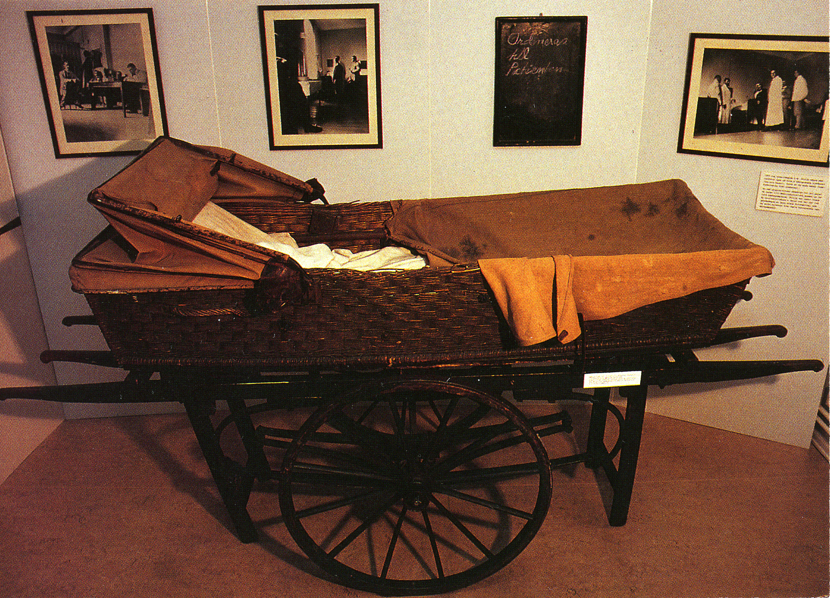 Göteborgs första ambulans, använd 1876-1900. Nu på medicinhistoriska muséet i Göteborg.