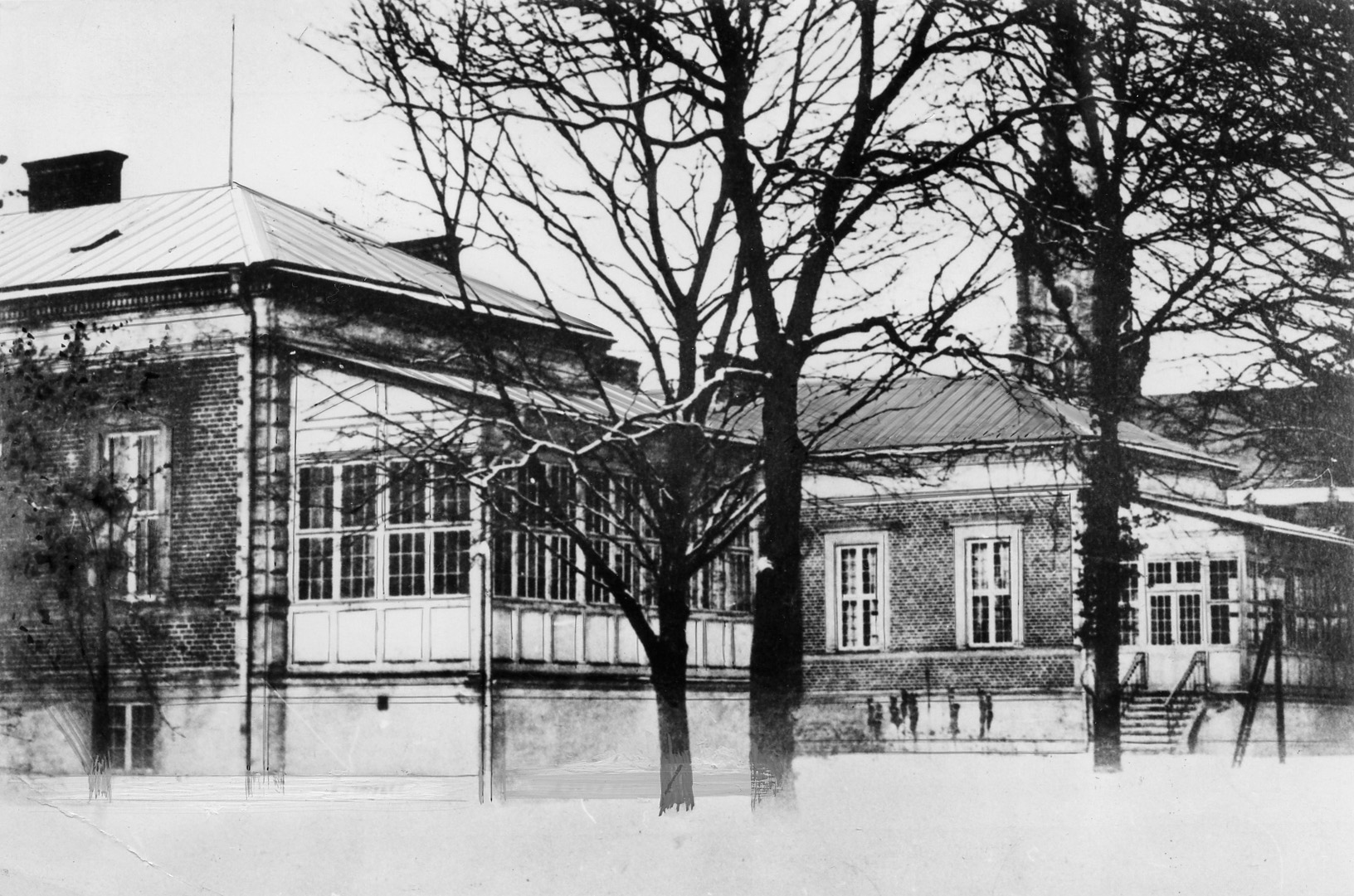 Det första barnsjukhuset i Lund före tillbyggnaden. Bottenvåning från 1900. Arkitekt: Salomon Sörensen. Allhelgonakyrkans torn skymtar i bakgrunden.
