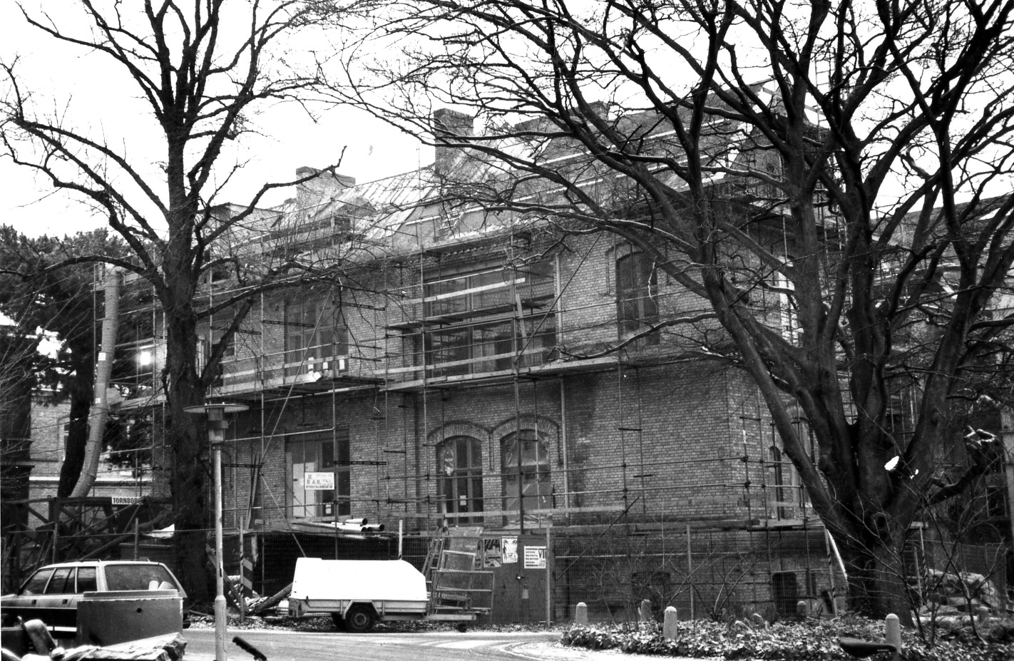 Kirurgens annex, med operationsavdelning. Nr 7 i en serie bilder tagna runt fasaden vid dess renovering, i motsols ordning runt huset. Foto rimligen på 1970-talet sedan kirurgen 1968 flyttat till centralblocket på norra lasarettsområdet och universitetet övertagit det södra.