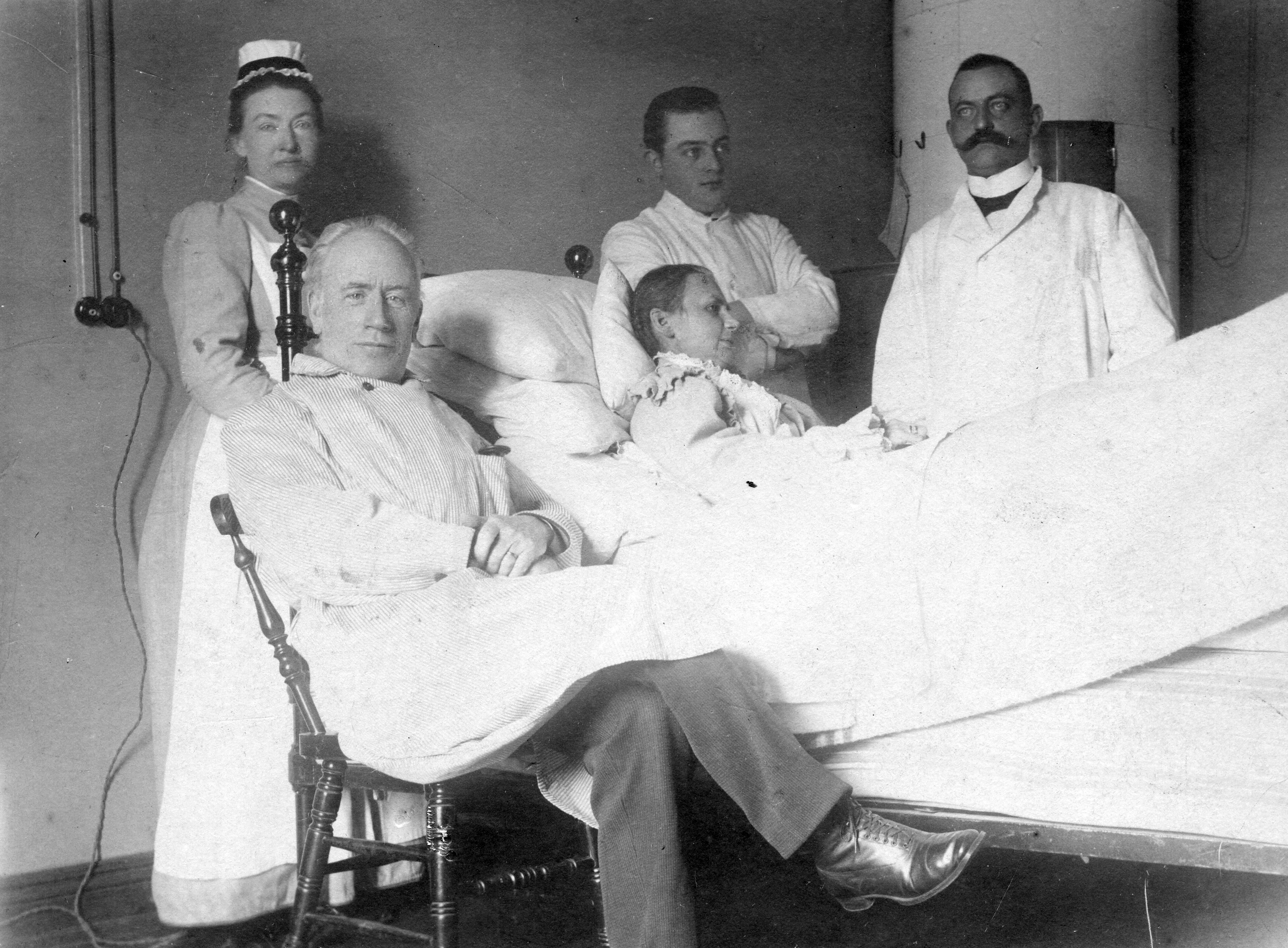 Professor Seved Ri bbing sittande vid en sjuksäng.